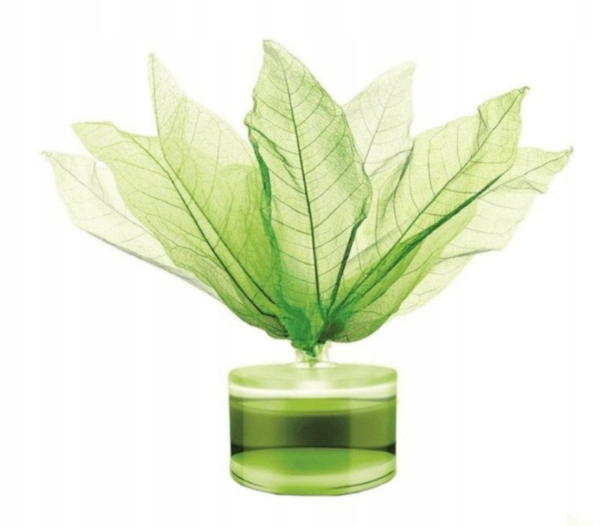 A dekoratív falevelek a luxus érzetét közvetítik megjelenésükkel és az igéző illatokkal, melyeket az üvegből kinyílva egyenletesen és harmóniát sugározva közvetítenek a légtérbe: green diamond, night sapphire, romantic ruby.