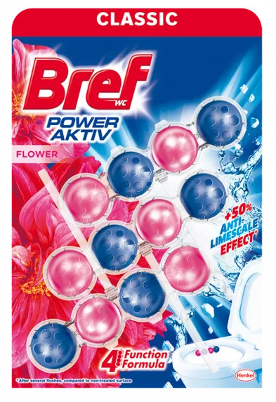 Az új Bref Color Aktív 4 funkicóval rendelkezik, hogy csillogóan tisztává és frissé varázsolja a toalettünket: