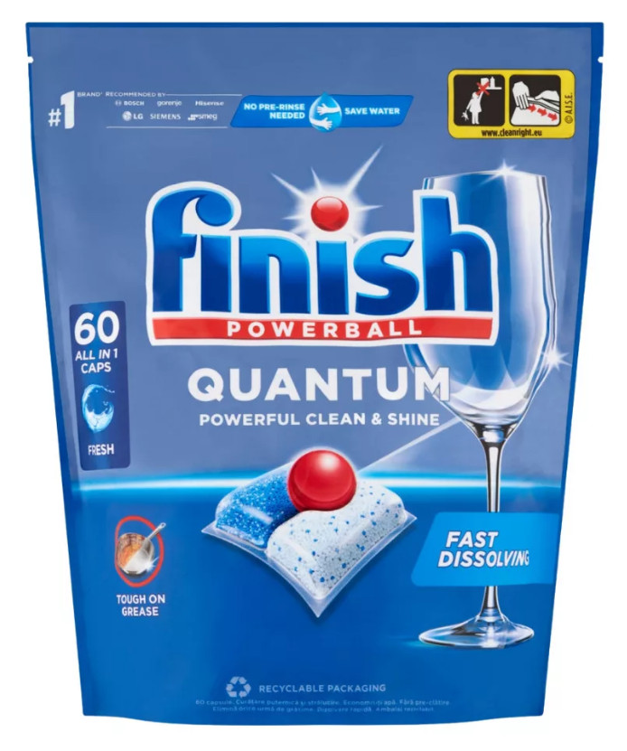 Csak száraz kézzel fogja meg. Ne tépje szét. Ne csomagolja ki a kapszulát, mivel mosogatás alatt teljesen feloldódik. Mosogatásonként egy kapszulát helyezzen be a száraz adagoló tartályba. Ne tegye a kapszulát az evőeszköztartóba. A legjobb eredmény érdekében használja gazdaságos/eco vagy automata programon. A kapszula só funkciója lágy/közepesen kemény és kemény vízben 26°e (21°dH) vízkeménységi fokig fejti ki hatását. Ha a víz nagyon kemény, akkor a jobb hatás érdekében adjon hozzá Finish vízlágyító sót.